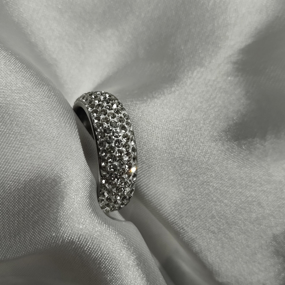 Turn heads with the dazzling brilliance of the Radiant Luxe pave dome ring – a bold and glamorous piece that exudes confidence and sparkle. Designed with a full band of shimmering stones, this ring offers maximum impact with minimal effort. The dome shape adds a contemporary edge, making it perfect for stacking or standing alone as a statement.