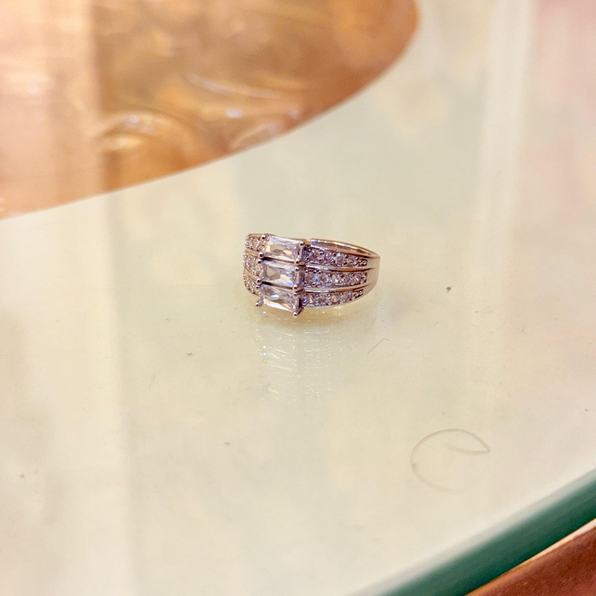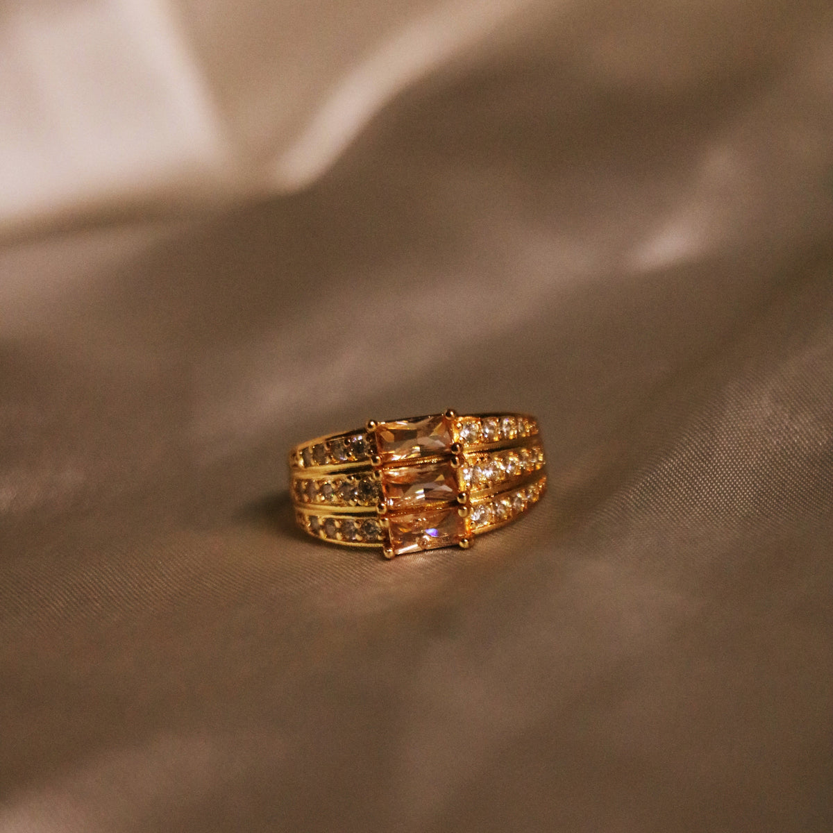 Enhance your style with this dazzling triple-row adjustable ring, available in both gold-plated and silver-plated finishes. Featuring a luxurious design adorned with radiant stones, this ring is the epitome of sophistication and elegance. Perfect for special occasions or everyday glam, it promises to be a standout piece in your jewelry collection.