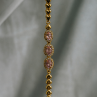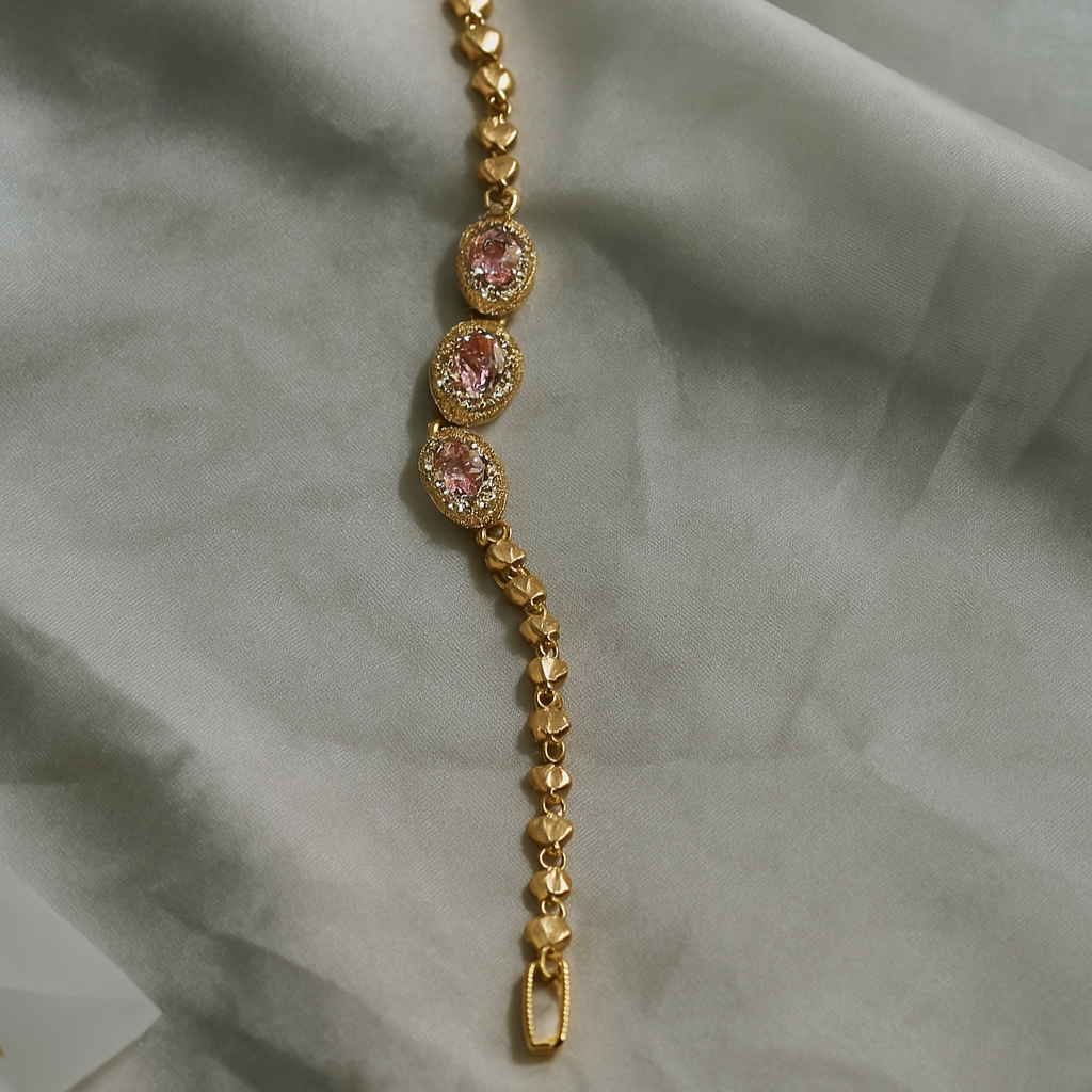 Capture timeless beauty with this exquisite gold-plated bracelet adorned with delicate pink crystal accents. Photographed gracefully against the backdrop of Urdu literature, this bracelet is a perfect blend of heritage and modern elegance. Its intricate design and stunning color combination make it an essential accessory for anyone looking to make a statement.