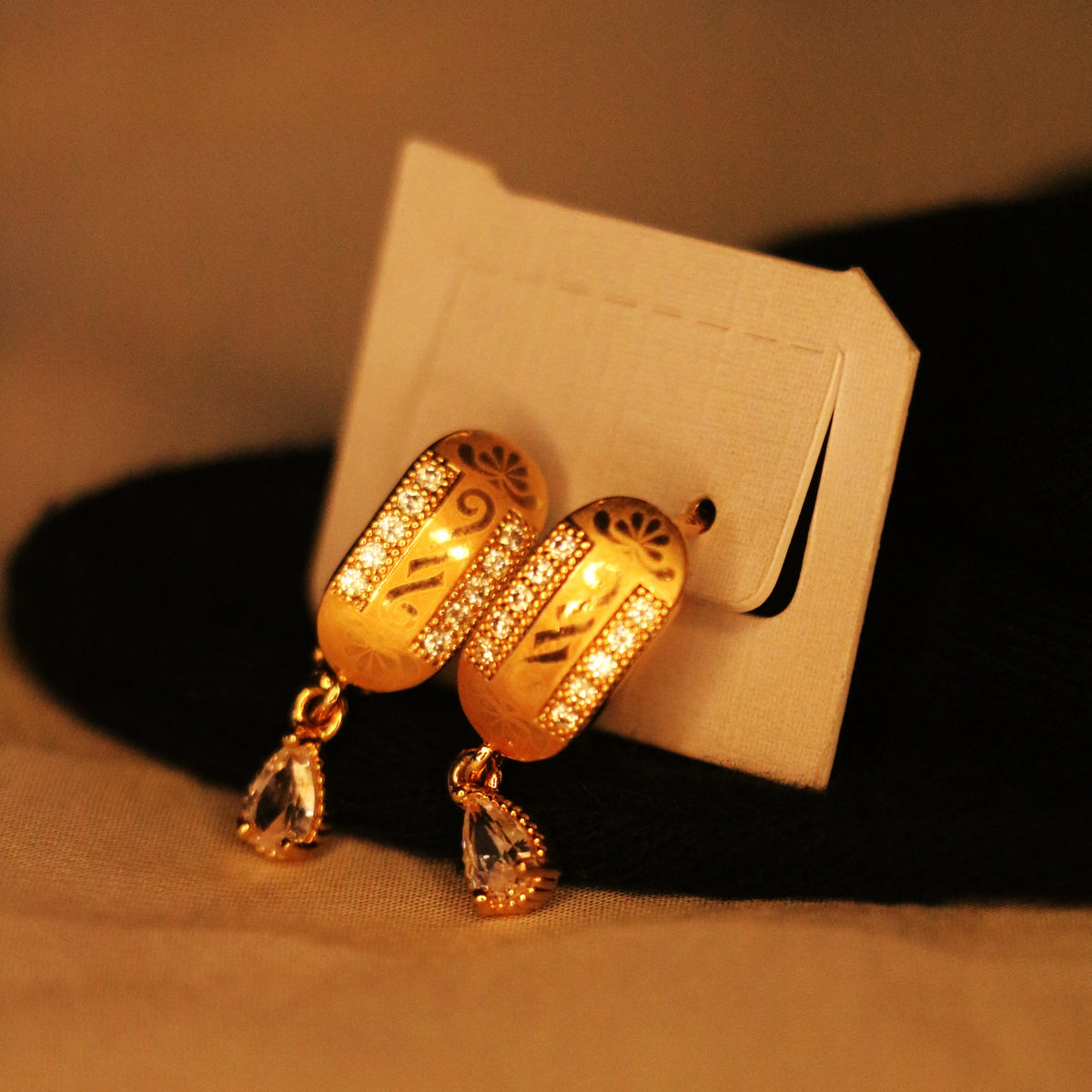 Add a touch of timeless elegance to your look with these gold-plated crystal drop earrings, crafted to sparkle and impress. Whether you're heading to a wedding, party, or a casual dinner, these earrings are the perfect accessory to make you shine.