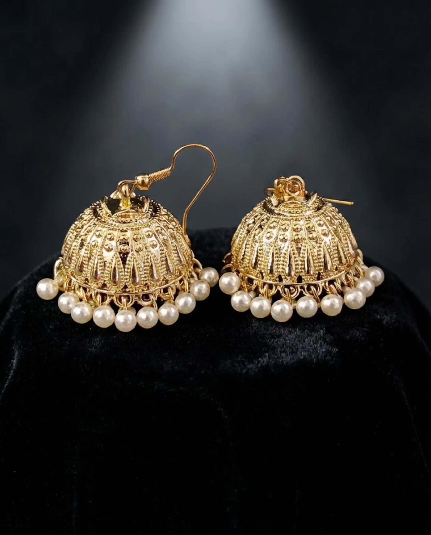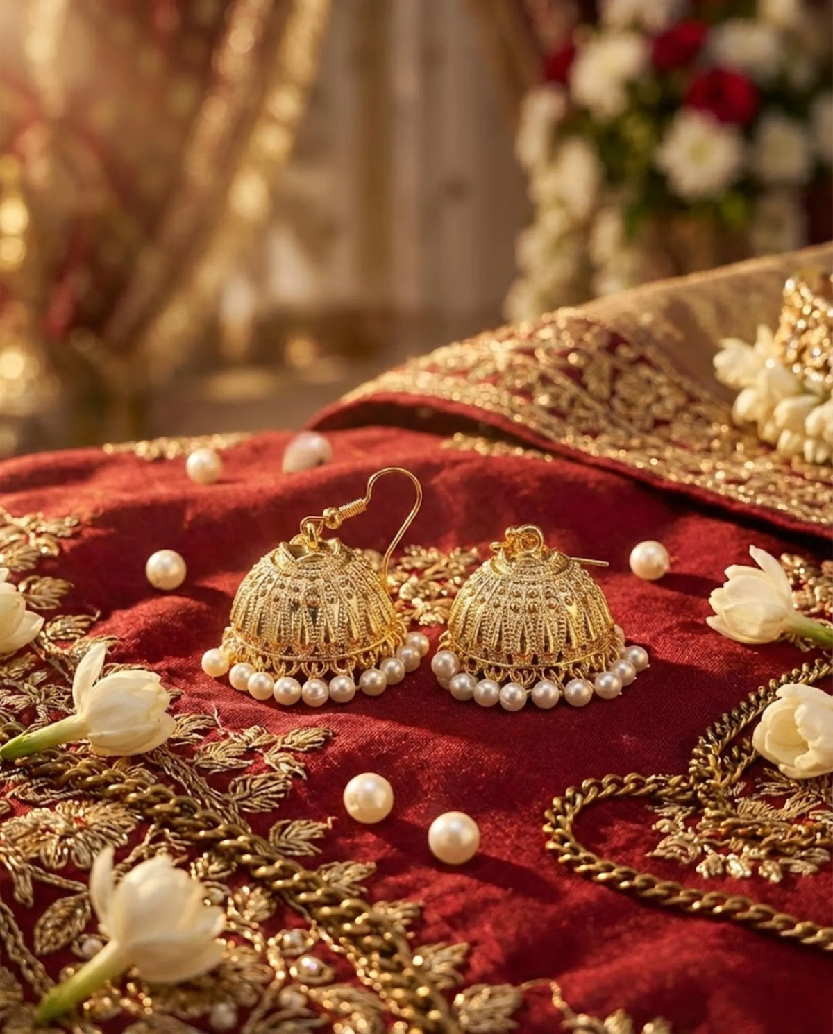 Orneza Gold Plated Square Jhumka Earrings with Ruby Drops