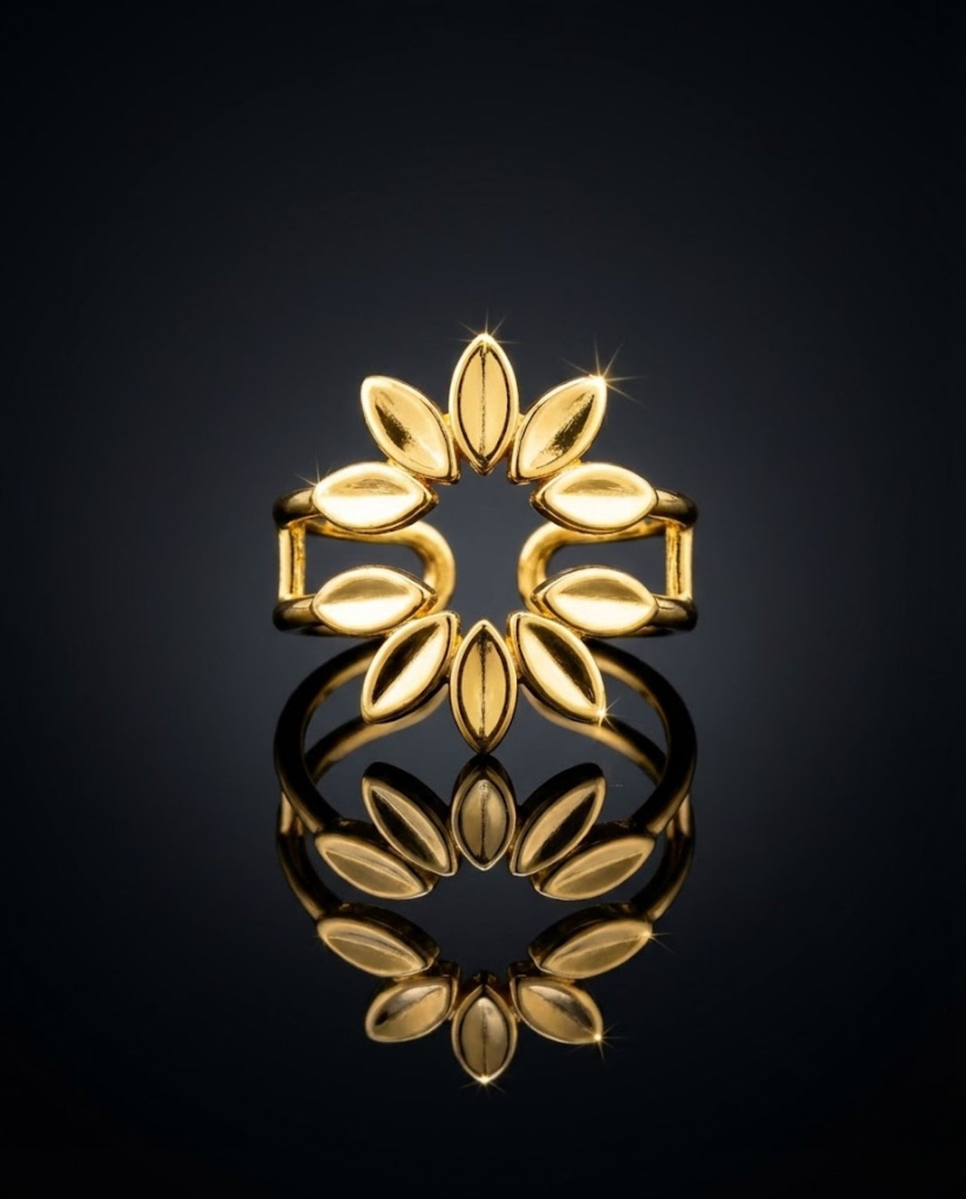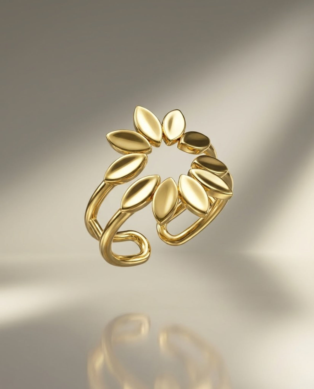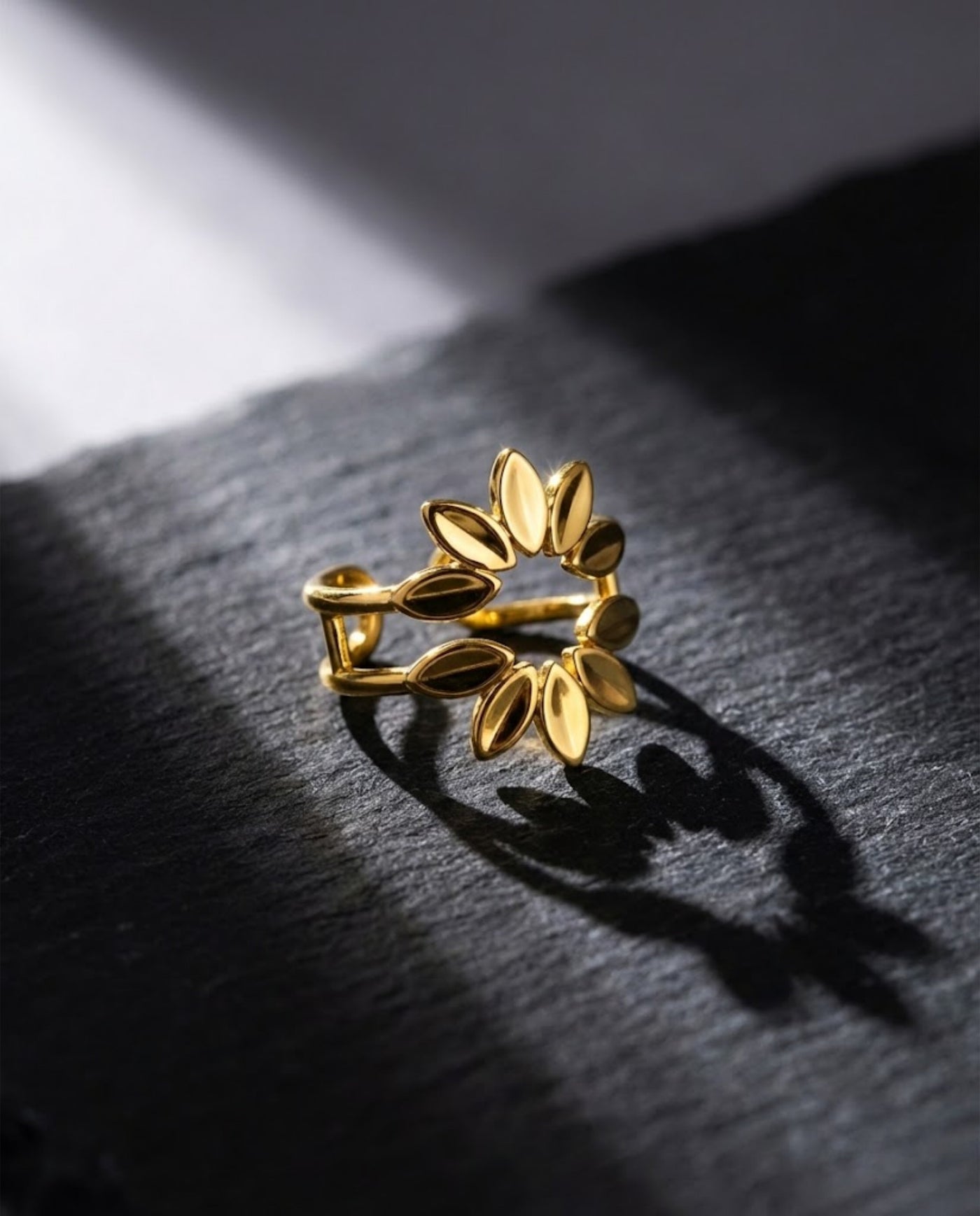 Orneza Gold Plated Laurel Leaf Adjustable Statement Ring