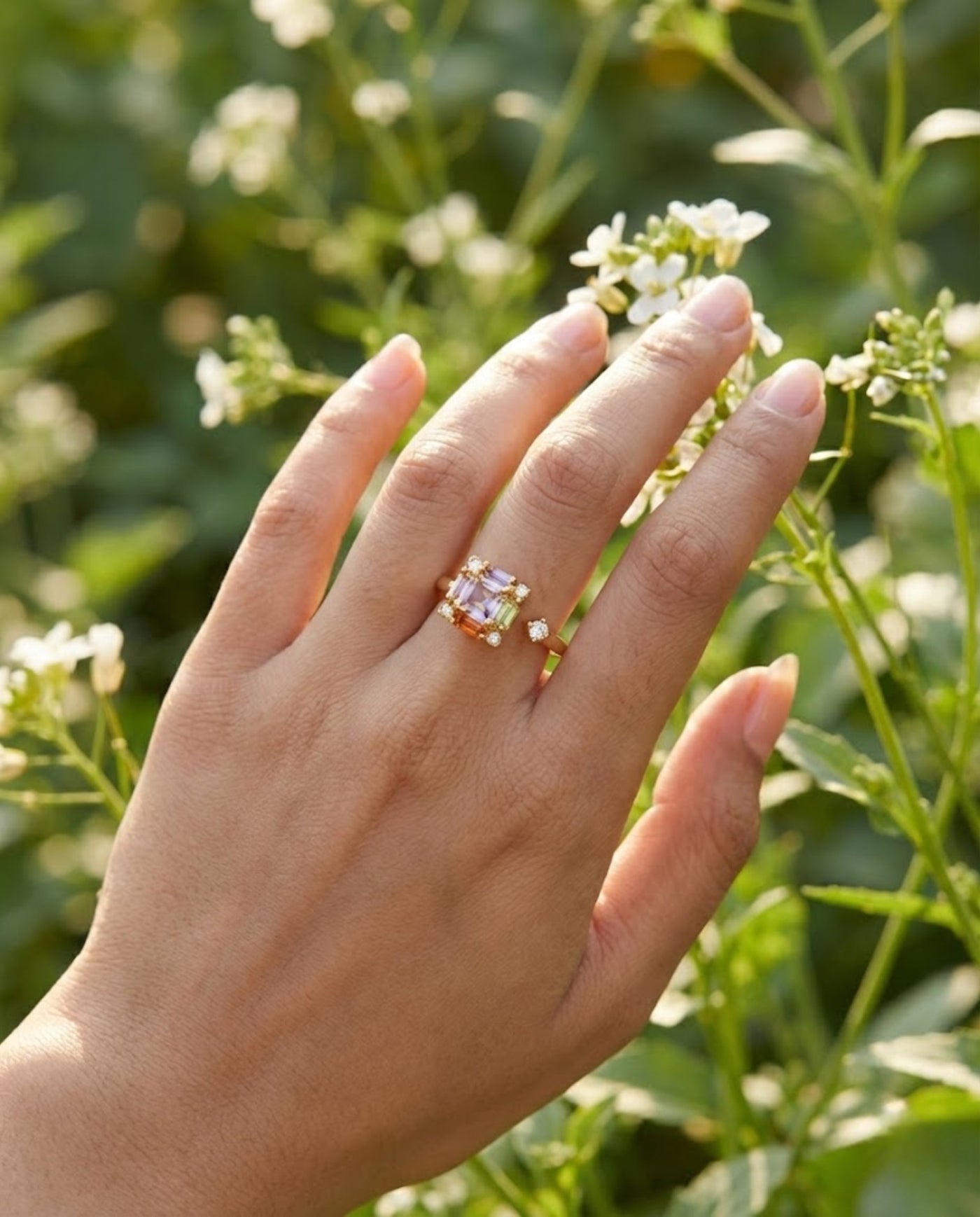 Orneza Multicolor Crystal Gold Adjustable Statement Ring