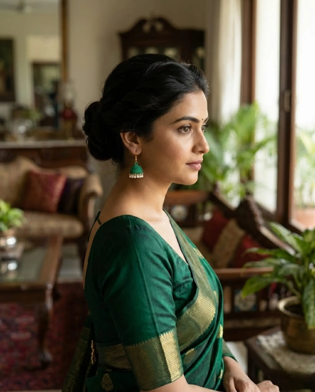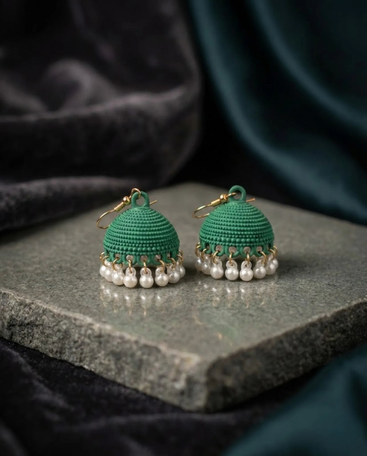 Orneza Emerald Green Textured Jhumka Earrings with Pearls