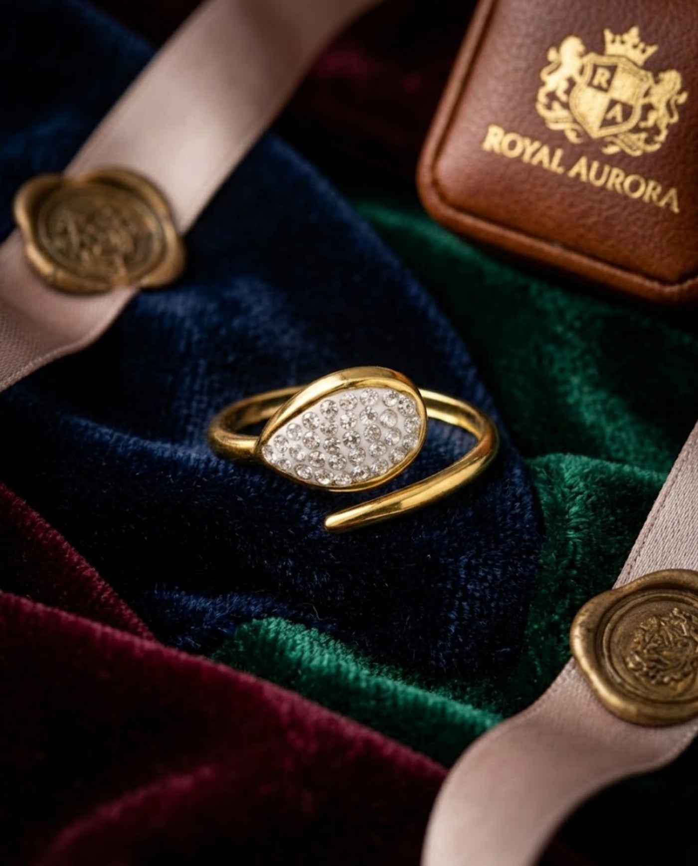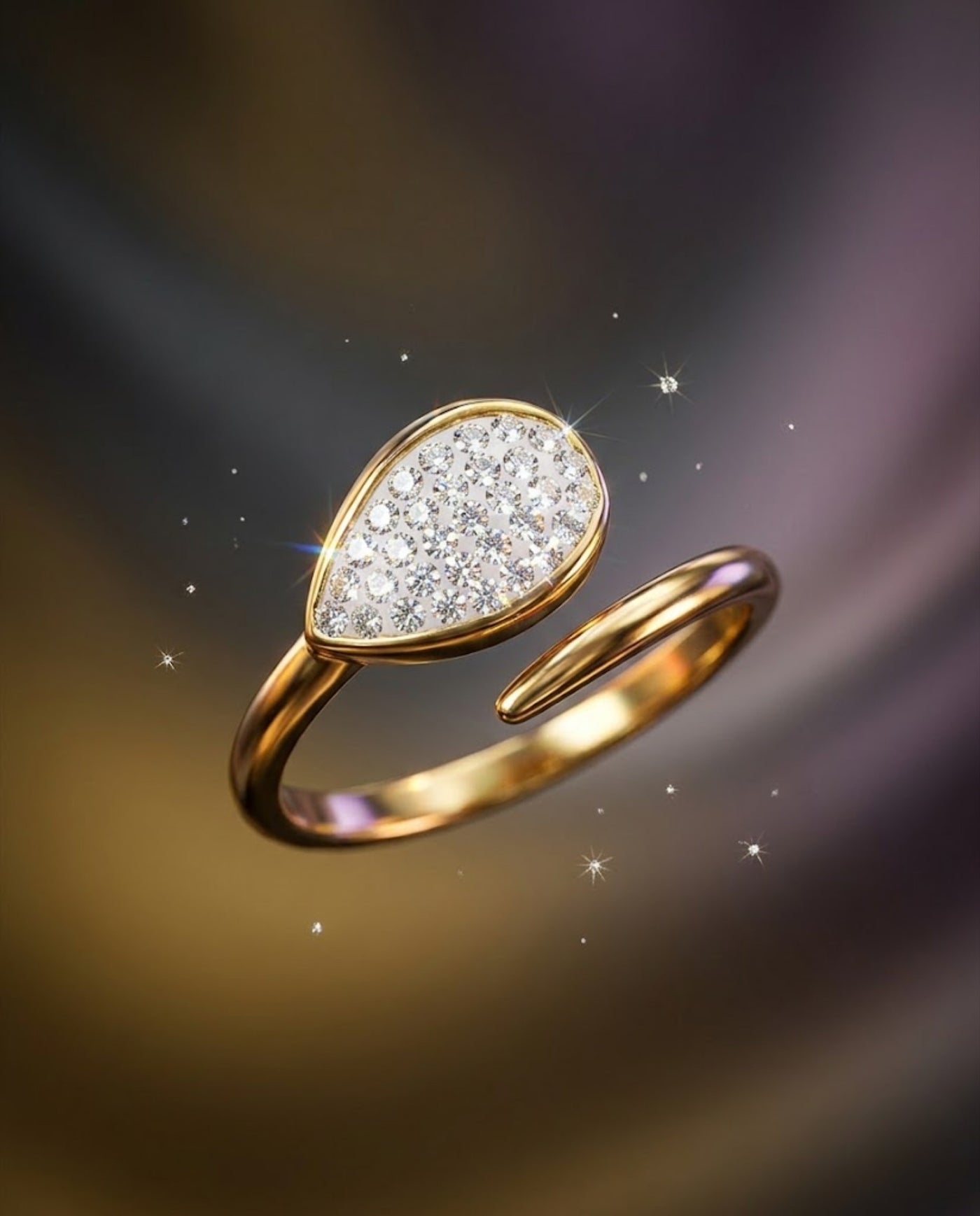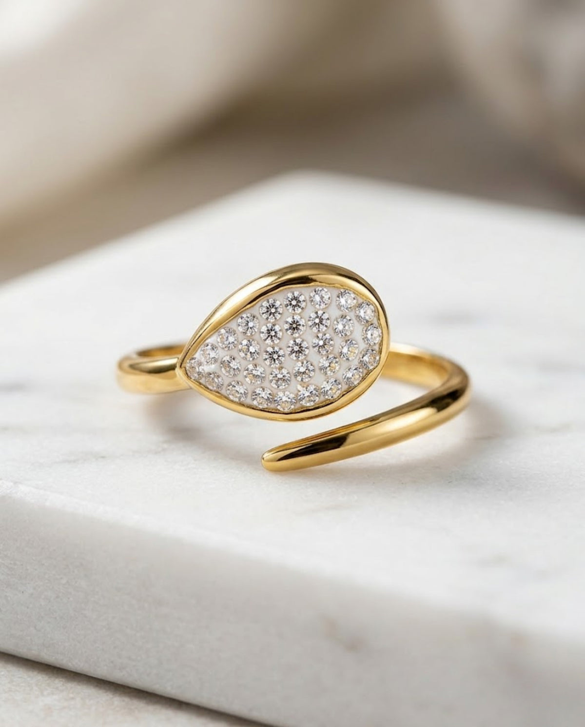 Orneza Gilded Pear Crystal Wrap Statement Ring