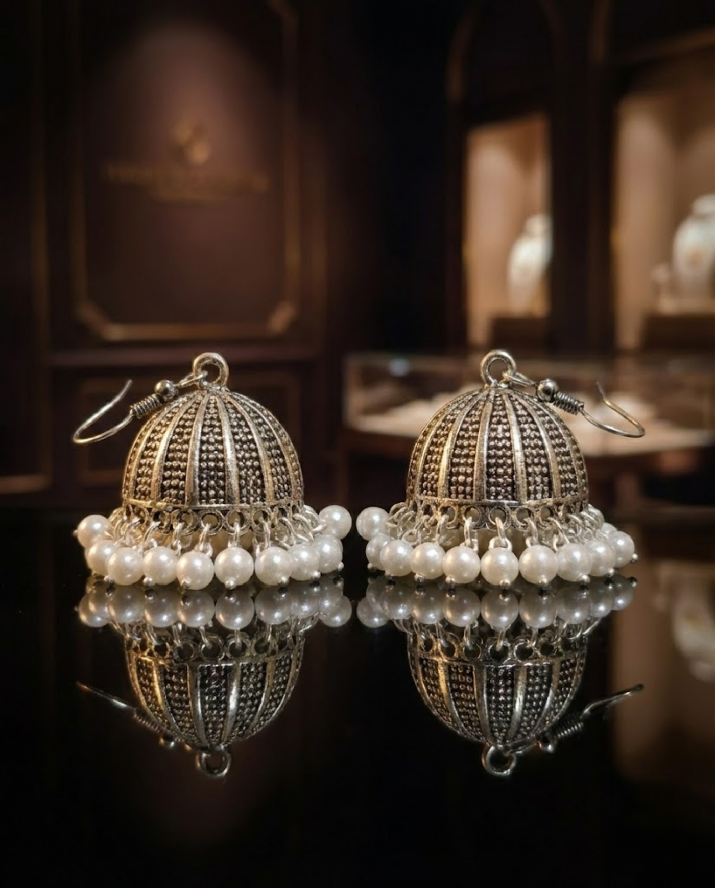 Step into a world where heritage meets high fashion with Orneza’s signature antique silver jhumkas. These earrings are more than just jewelry; they are a tribute to the timeless grace of the East, reimagined for the contemporary woman who carries her culture with confidence. Every intricate carving on the oxidized silver dome tells a story of artisanal mastery, capturing the essence of vintage royalty.