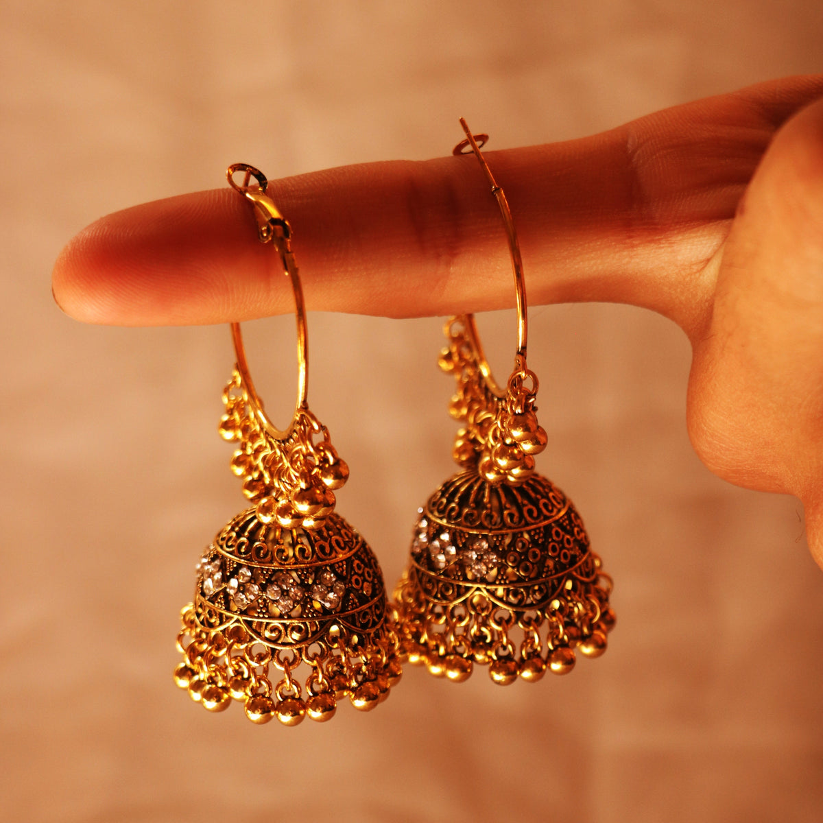 Golden Hoop Jhumka Earrings – Traditional Charm Meets Modern Elegance