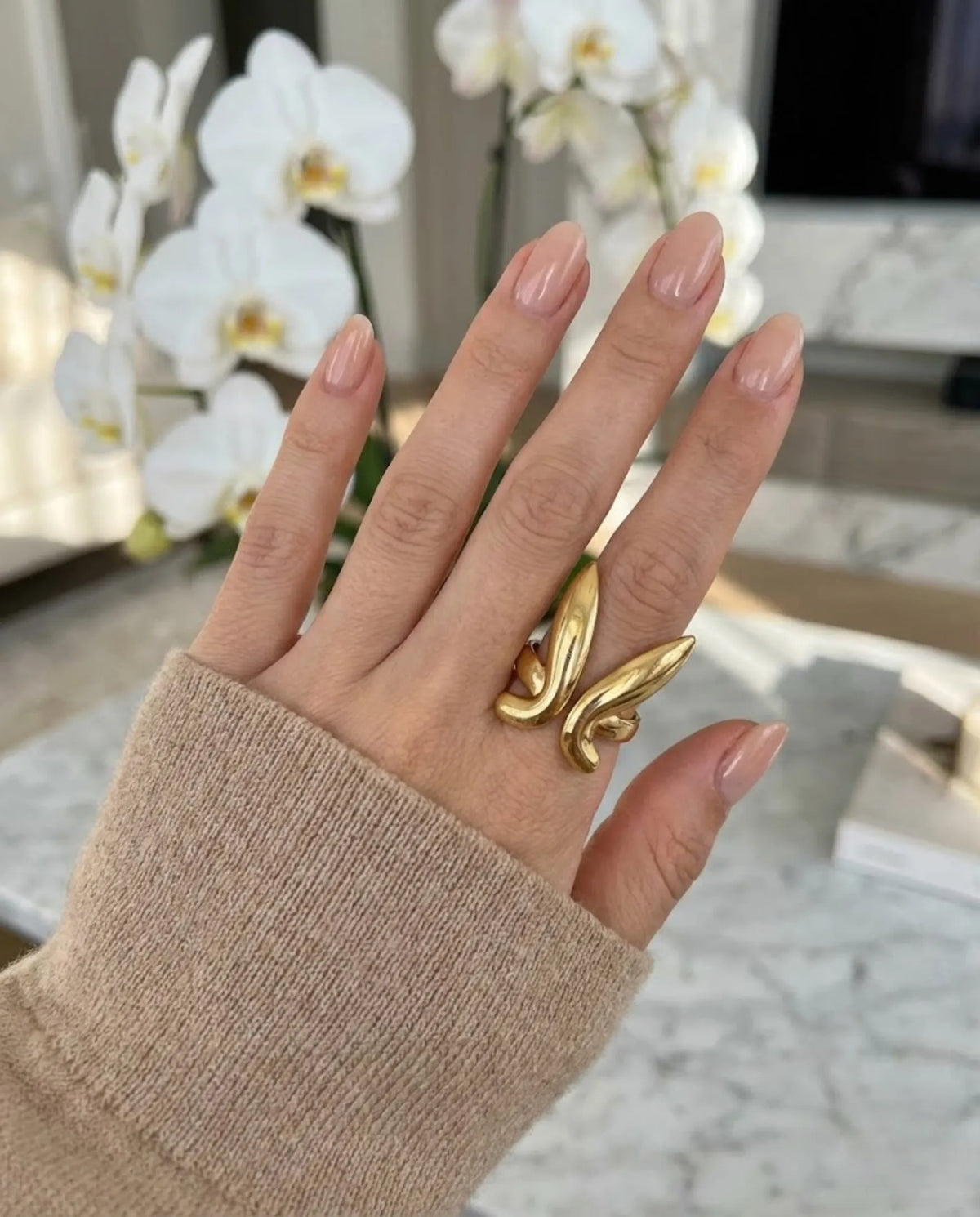Step into the spotlight with the Orneza Aura Ring, a masterpiece of fluid motion and avant-garde design. This sculptural statement piece draws inspiration from the ethereal grace of wings in flight, transformed into a bold, high-shine silhouette that wraps elegantly around the finger. It is a celebration of the modern woman’s ascent—a symbol of freedom and unapologetic glamour that transitions seamlessly from a chic daytime rendezvous to an opulent evening event.
